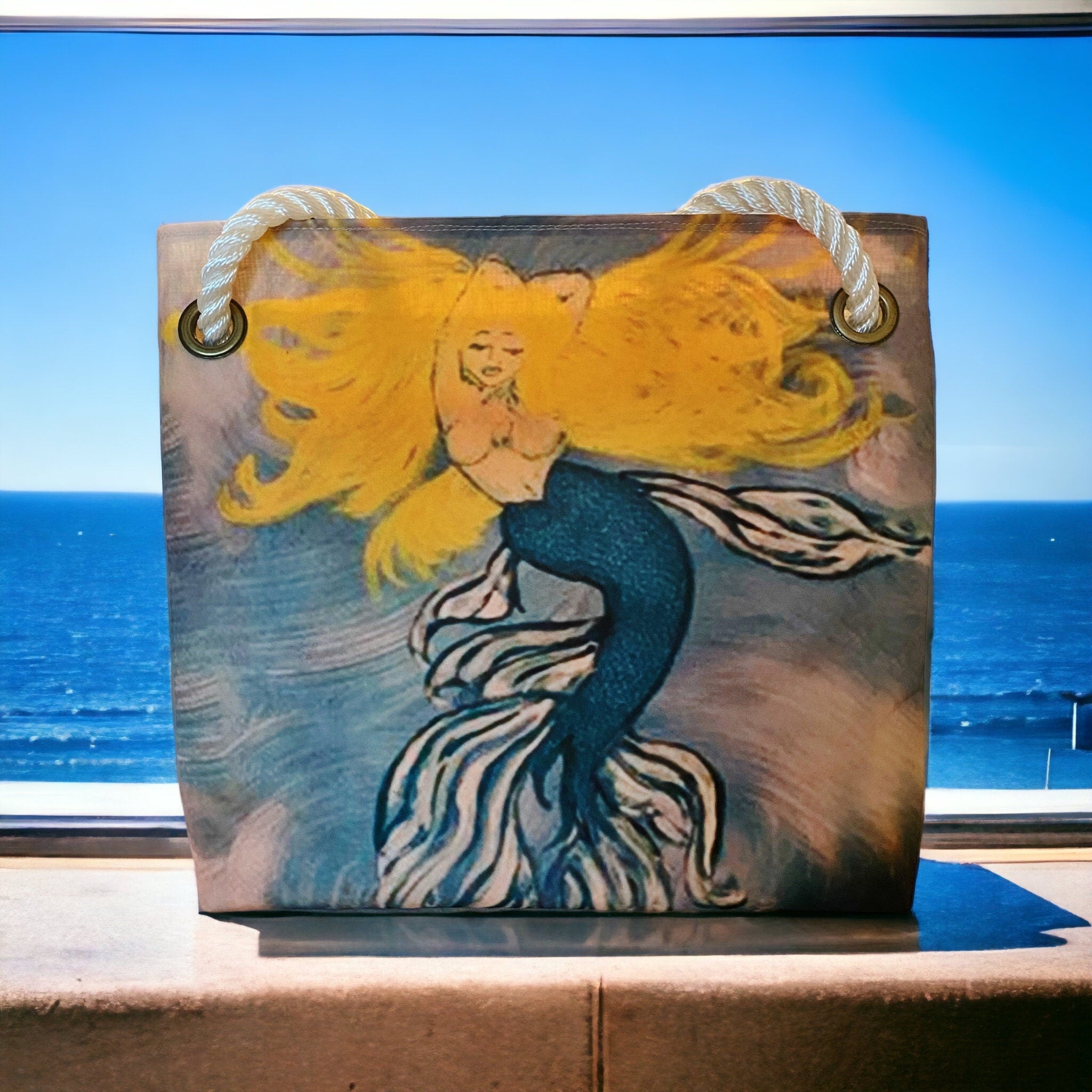 Sturdy black or white rope handles make carrying comfortable. Machine washable and waterproof, this tote is ideal for beach trips, coastal adventures, gifts for ocean lovers, or everyday nautical style.